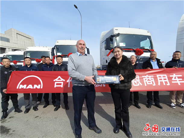 中国交通在线新疆讯(通讯员杨晨 文/图) 3月18日,在新疆双港产业投资发展有限公司,10辆崭新的德国原装“MAN”TGX牵引重卡“披红戴花”整齐列阵。当曼恩商用车辆贸易(中国)有限公司中国区销售...