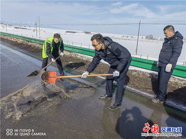 中国交通在线新疆讯(通讯员 韩彩萍 文/图)冬春交替之际,气温多变,道路积雪融水易导致路面出现坑洼、积水等安全隐患,严重影响通行安全。为切实保障辖区公路安全畅通,近期昭苏县交通运输局执法科干部坚守...