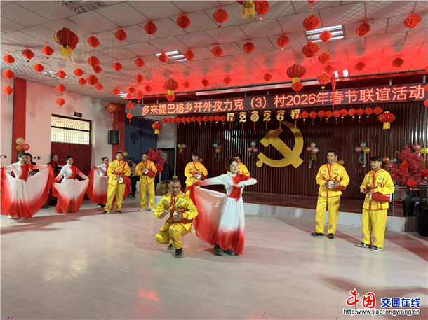 中国交通在线新疆讯(巴楚县融媒体中心 热孜万古 月尔亚提)锣鼓喧天辞旧岁,欢歌笑语迎新春。2月13日,巴楚县多来提巴格乡开外孜力克村热闹非凡,一场以“文体联谊庆新春·和美乡村共奋进”为主题的春节联...