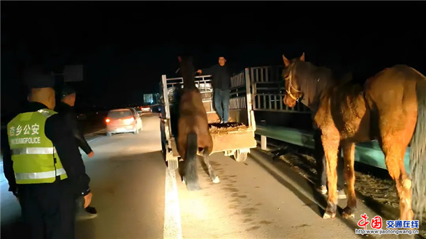 两匹马高速“散步”遇险 伊宁县民警暖心救援