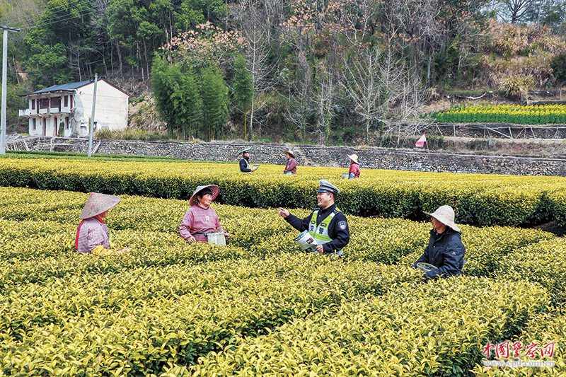 民警辅警向群众讲解春季交通安全出行知识。杨晓东 摄 3月16日,浙江省浦江县公安局交通管理大队民警辅警走进茶山茶园,通过以案说法等方式,提升采茶群众交通安全自我防范意识。...