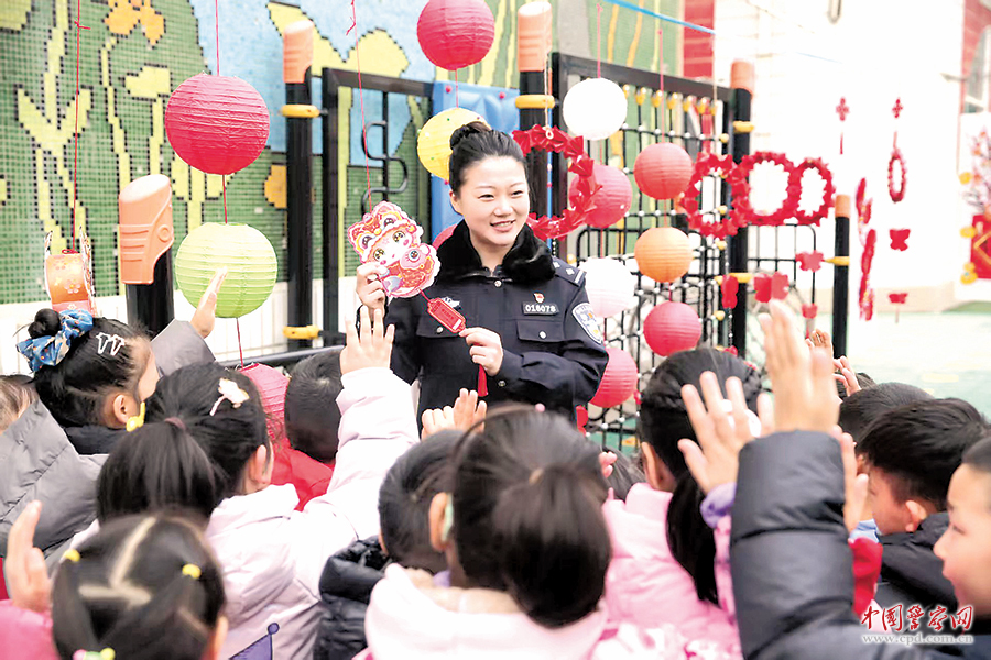 图为民警和孩子们互动。郝鑫城 摄 近日,山东省济南市公安局市中分局民警来到辖区幼儿园,开展生动有趣的安全教育活动,让孩子们在轻松愉快的氛围中增强安全意识。...