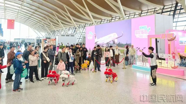 3月11日,由上海机场集团与意大利SAVE机场集团联合举办的“你好,上海”全球姐妹机场联合展示活动在浦东机场T2出发大厅举行。 威尼斯周活动现场(善见 摄) 2019年,上海机场与威尼斯机...