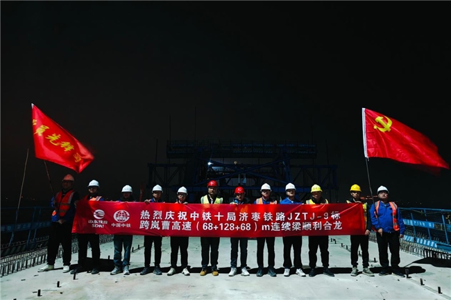 3月15日,中铁十局承建的济枣铁路九标控制性工程——跨岚曹高速(68+128+68)米连续梁顺利合龙,较计划提前10天完成节点,为后续箱梁架设创造了有利条件,标志着项目桥梁建设取得关键性进展。