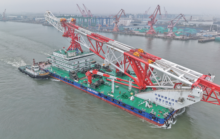 3月16日,“铁建大桥桩1”轮顺利离泊江苏大津重工有限公司南通基地码头,前往东海试航区进行试验