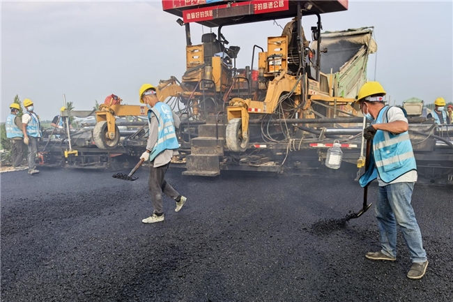 为确保施工质量可控,项目部提前组建专项攻坚小组,结合中面层材料特性开展多轮参数模拟测算,确定了最优的生产配合比、机械组合等参数。施工中,项目采用非接触式平衡梁自动找平工艺精准控厚控平,累计投入压路机、摊铺机等设备10余台,运输、摊铺、碾压等工序衔接紧凑、组织有序。现场管理人员全程紧盯混合料温度、摊铺厚度、平整度等环节,实现全流程无死角盯控,同步记录下全套施工数据,为后续大规模沥青摊铺积累了宝贵经验,确保各项技术要求落地见效。