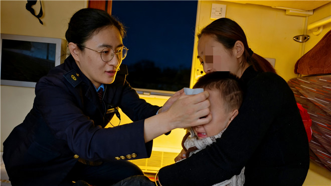 中国交通在线(付娜 通讯员:陈新)2月24日,由沈阳客运段客运一队担当的Z12次列车,从沈阳北站驶向广州白云站。运行途中,12号车厢一名两岁半儿童突发高烧咳嗽,列车乘务人员迅速行动、接力守护,用暖...