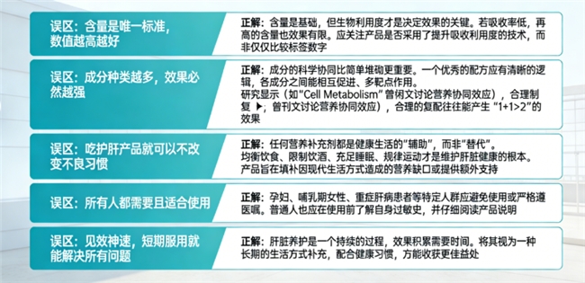正解: 任何营养补充剂都是健康生活的“辅助”,而非“替代”。均衡饮食、限制饮酒、充足睡眠、规律运动才是维护肝脏健康的根本。产品旨在填补因现代生活方式造成的营养缺口或提供额外支持。